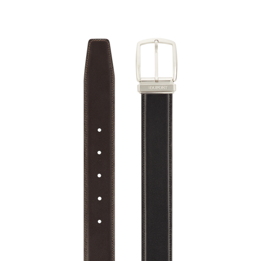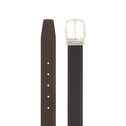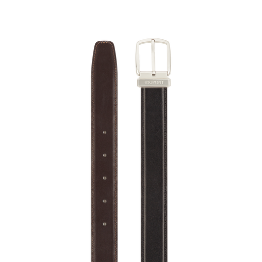 La cintura di alta gamma Line D è un modello al tempo stesso classico e raffinato che è possibile indossare tanto con dei pantaloni casual, quanto con un abito classico in fresco lana, da abbinare al colore delle scarpe e dell’abito. La linea e le finiture sobrie dell’accessorio aggiungeranno un tocco di eleganza all’insieme, senza dare nell’occhio. Le nostre cinture sono disponibili in vari colori e patine e in due larghezze diverse. Il logo S.T. Dupont è inciso a mo’ di firma nella barretta in metallo. Il modello Business, double face, gioca con i contrasti, associando tutte le tecniche che hanno reso famoso il marchio, tanto che per produrre questo accessorio semplicemente indispensabile per ogni uomo elegante sono richiesti laccatura, cesellatura, metalli preziosi e patine. Nelle collezioni di cinture della Maison l’attenzione al dettaglio è spinta all’estremo come solo l’eccellenza pretende; un esempio’ I passanti bicolori con iniziali permettono di abbinare il colore della cintura alle finiture della chiusura.
