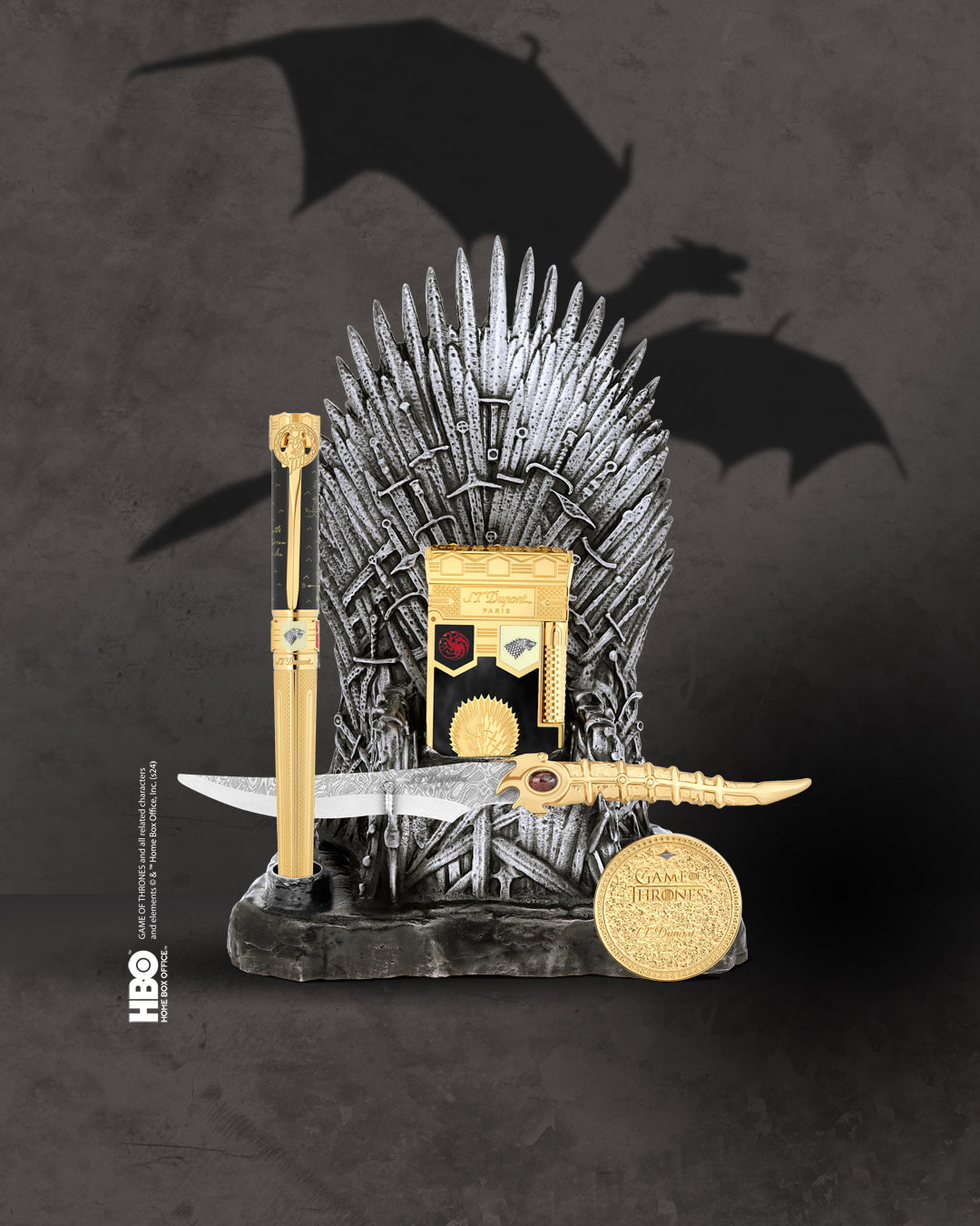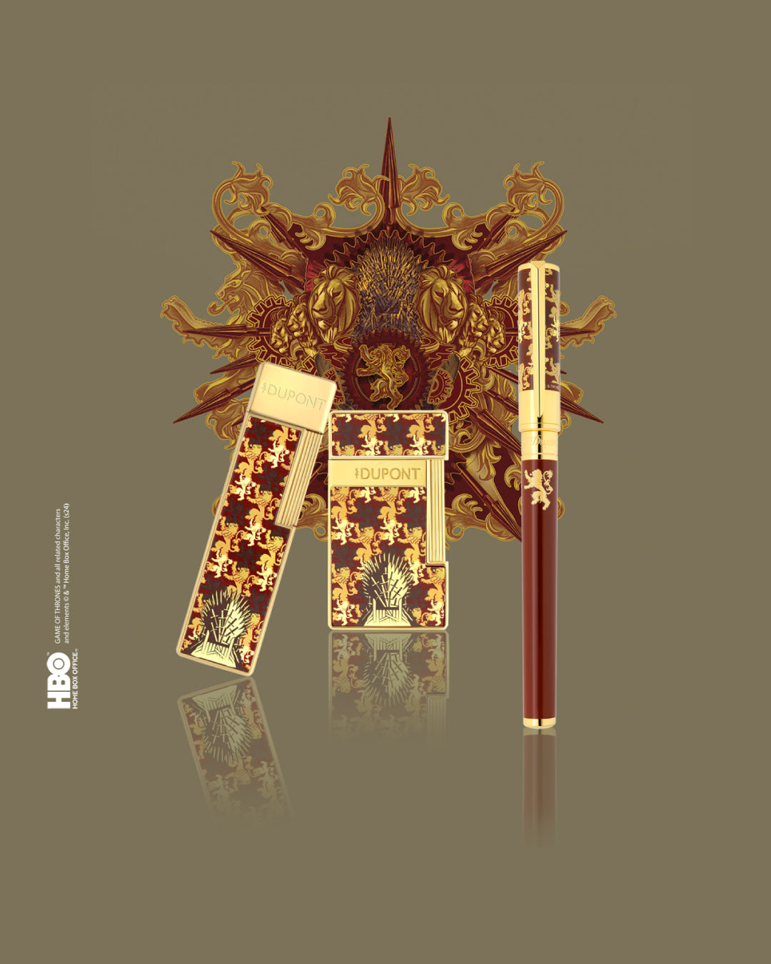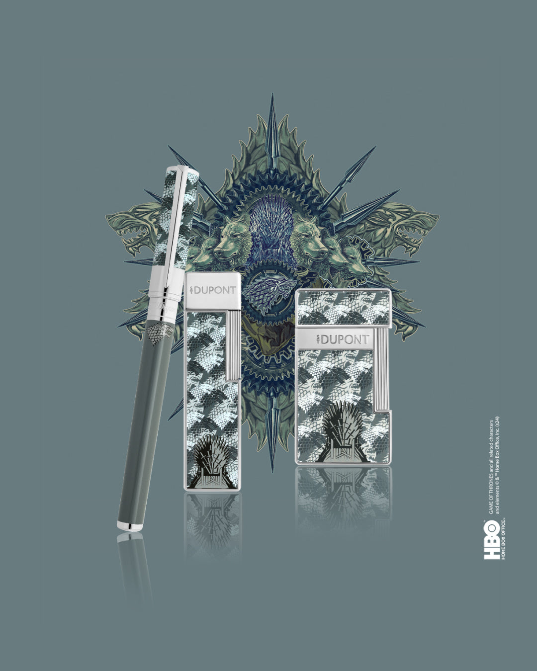 Simboleggiando le lotte di potere in atto a Westeros, il Trono di Spade è composto dalle spade di successivi guerrieri sconfitti. La lavorazione dei metalli richiama l'esperienza di S.T. Dupont, eccezionale orafo da quasi duecento anni. Una collezione “made in France” in edizione limitata