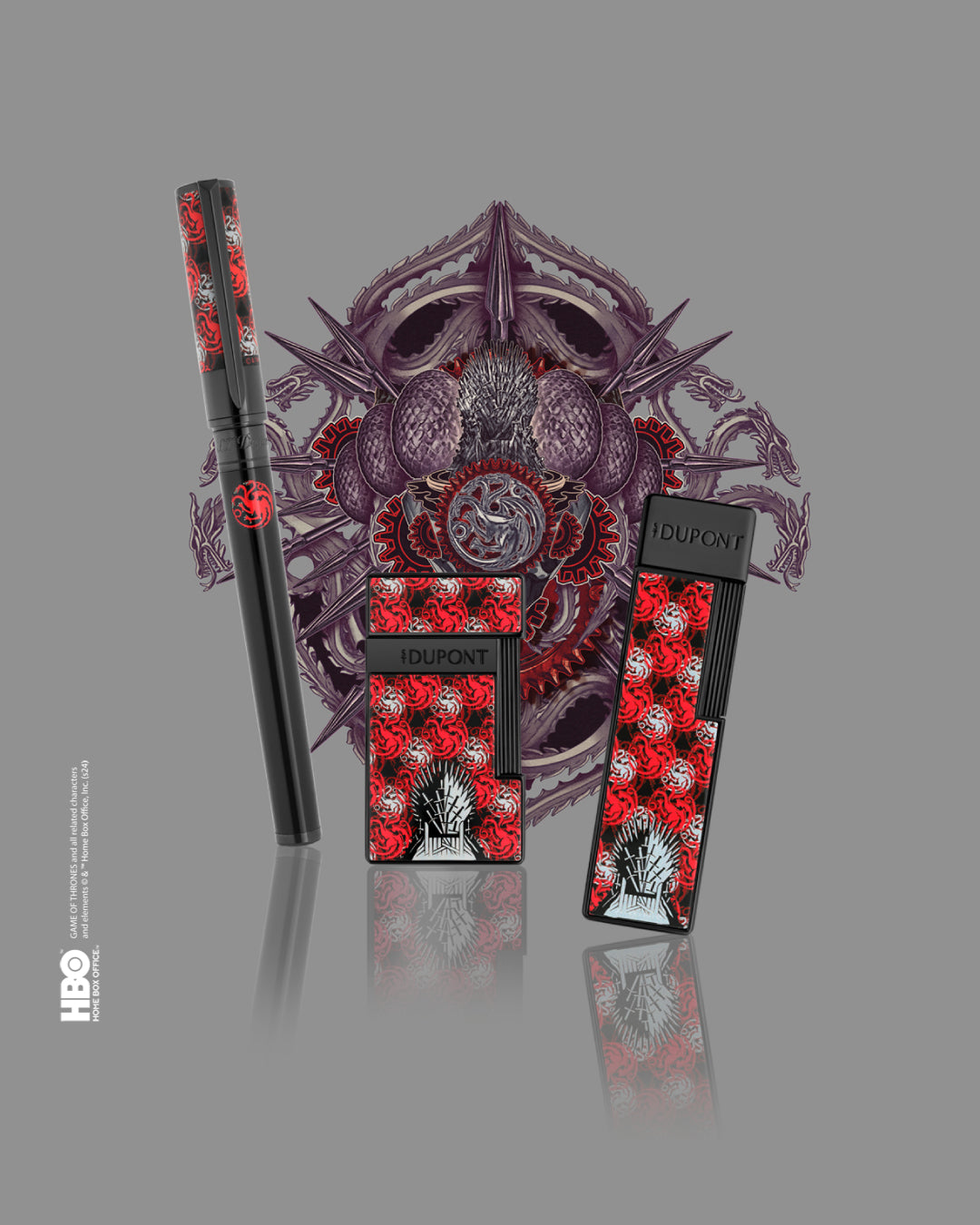 Game of Thrones x S.T. Dupont” incarna la volontà di chi fa la propria storia. Questa collezione dà vita ai temi che la attraversano. E al know-how di S.T. Dupont. L'arte del fuoco, della scrittura e la maestria dell'orafo della casa si esprimono nella lussuosa interpretazione del Trono di Spade o degli iconici draghi.