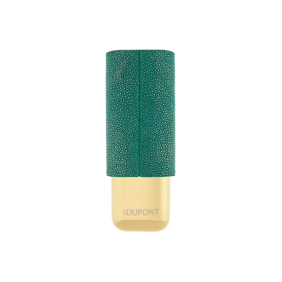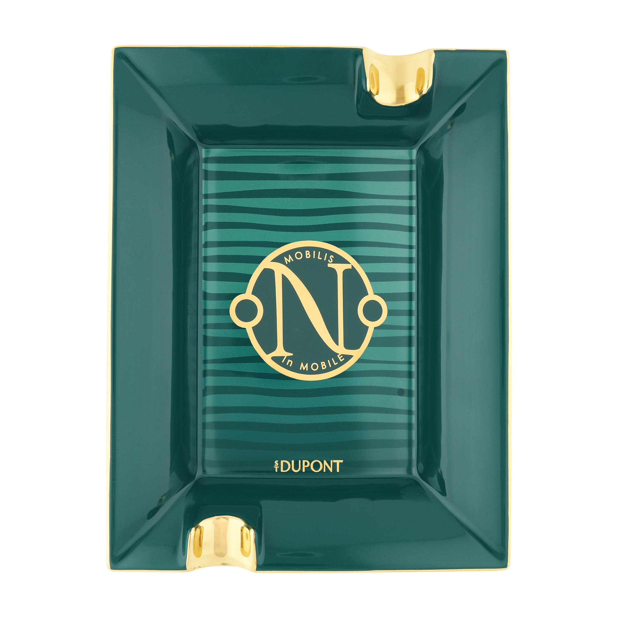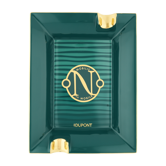 Un posacenere con il logo Nautilus stampato e bordi dorati dipinti a mano, insieme a un tagliasigari e a un porta sigari in pelle di galuchat verde profondo, completano questa collezione.