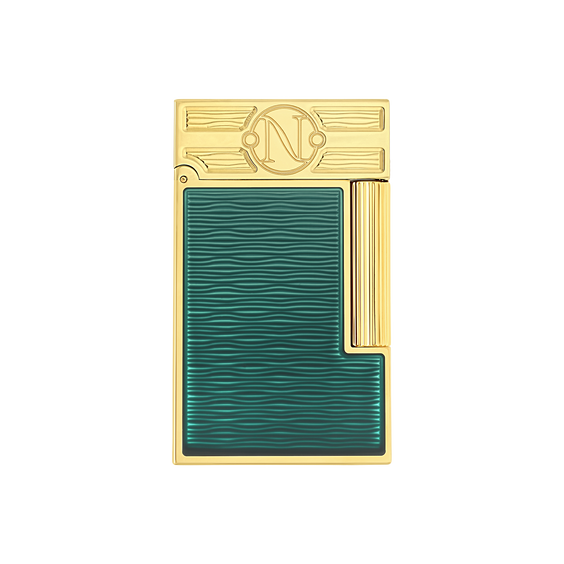 Sul briquet Ligne 2, una nuova guilloché scintilla sotto la lacca, ondeggiando come un mare di onde. La lacca, sempre più profonda e scura, è lavorata a gradiente e rifinita con dettagli dorati.