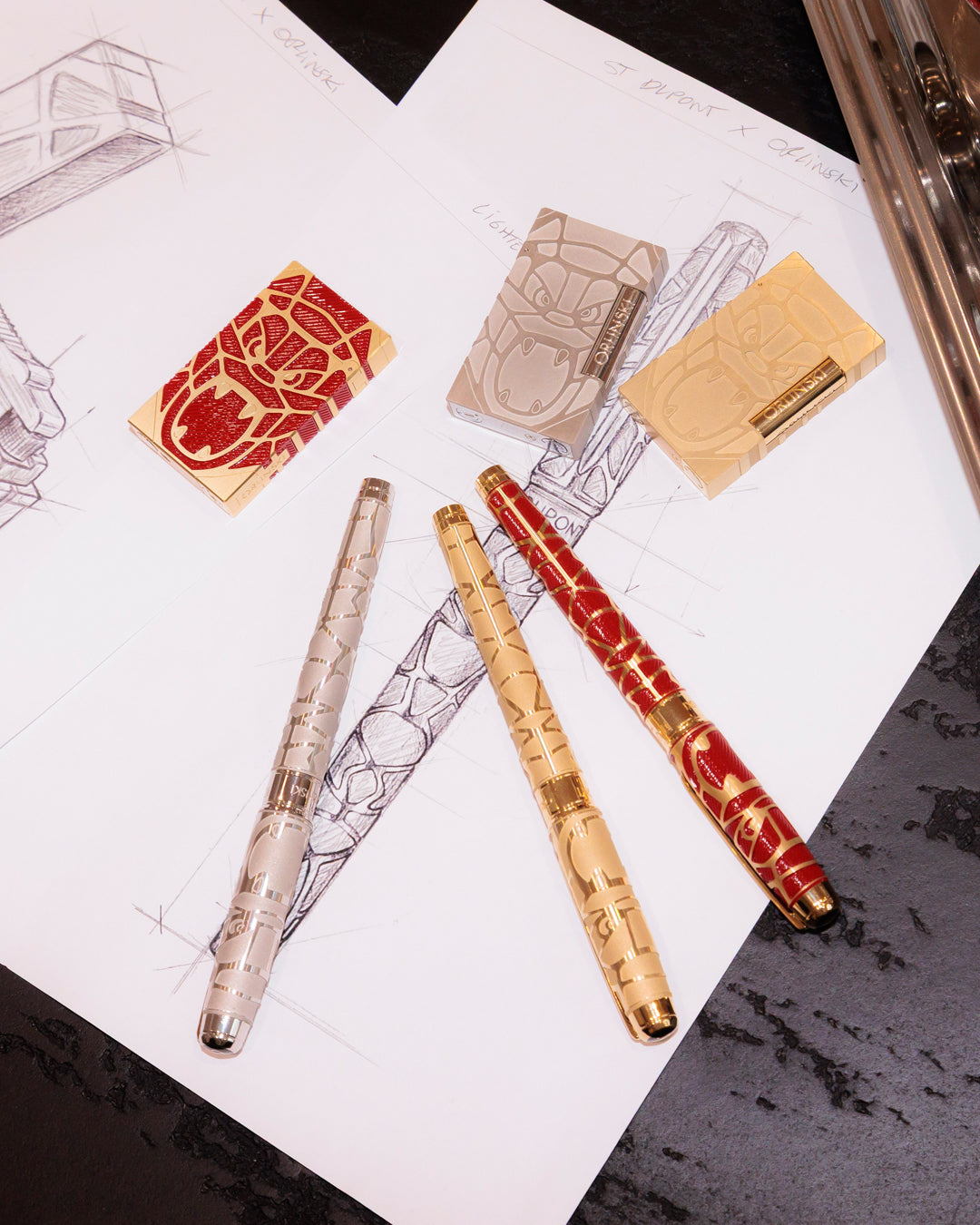 Con questa collezione, S.T. Dupont e Richard Orlinski reinventano le icone della Maison: il accendino Ligne 2 e lo strumento da scrittura Line D Eternity, così come Biggy, Slimmy e la penna a sfera Initial. Ogni pezzo è permeato dal linguaggio artistico di Richard Orlinski, diventando un’opera d’arte a sé stante.