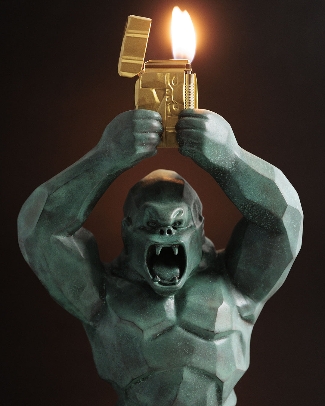 Grazie alle facce caratteristiche dell’artista, ogni pezzo decompone la mascella del gorilla, creando opere d’arte uniche. Più di una collezione, questa linea Haute Création afferma una convinzione: l’arte va vissuta, condivisa e fatta risplendere nella vita. Haute Création x Richard Orlinski incarna così una potente fusione tra la fiamma di S.T. Dupont e l’istinto selvaggio dell’arte contemporanea.