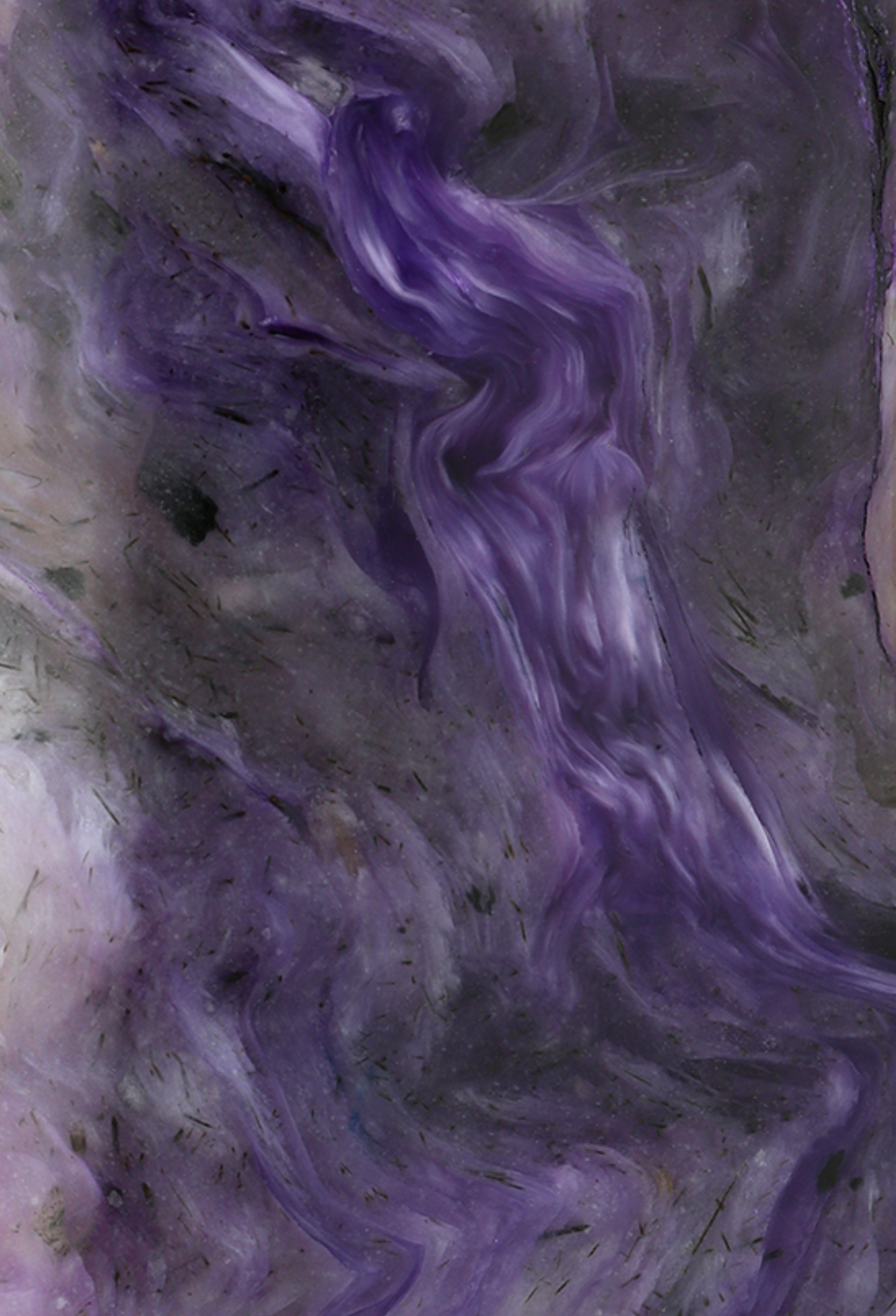 Proveniente dalle remote regioni della Siberia, la Charoite è una pietra rara con suggestive venature nei toni del viola e del lilla.